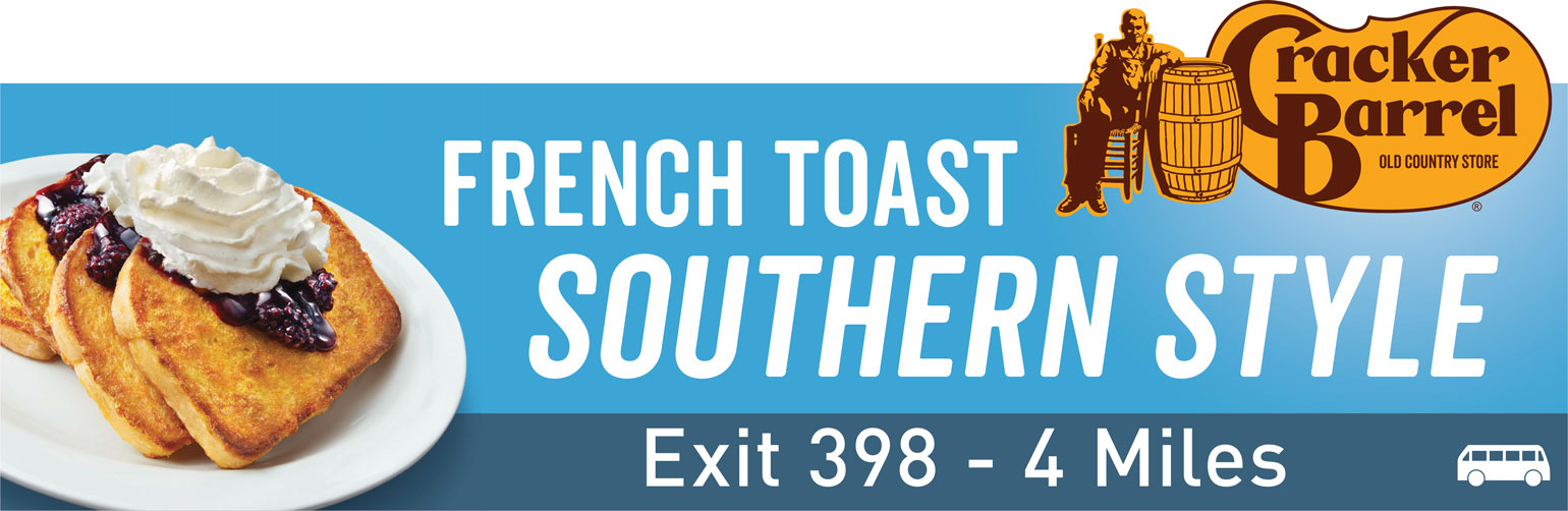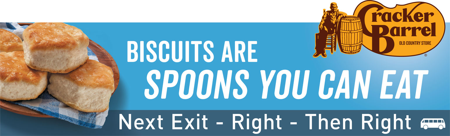 As most of us know, Cracker Barrel is one of the top destinations for families on road trips. It is also, among the top billboard advertisers in the industry. Being that OOH advertising accounts for nearly half the clients budget, they wanted to see newly thought out billboards to replace ones they've repeated for several years.
